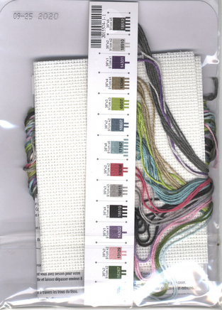 Included in the package: white 14 count cotton Aida x-stitch fabric, color card with pre-sorted 100% cotton embroidery floss, needle, chart and easy to follow tri-lingual instructions ~ Everything you need to complete this CrossStitch project