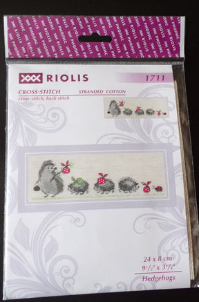 RIOLIS-Counted Cross Stitch Kit. Express your love for arts and crafts with these beautiful cross stitch kits! Find a themed kit for any taste! This package contains 14 count flaxen Aida Zweigart fabric, Anchor stranded cotton threads in seven colors, needle, instructions and color chart. Design: Hedgehogs. Finished Size: 9.5x3.25 inches. Imported.