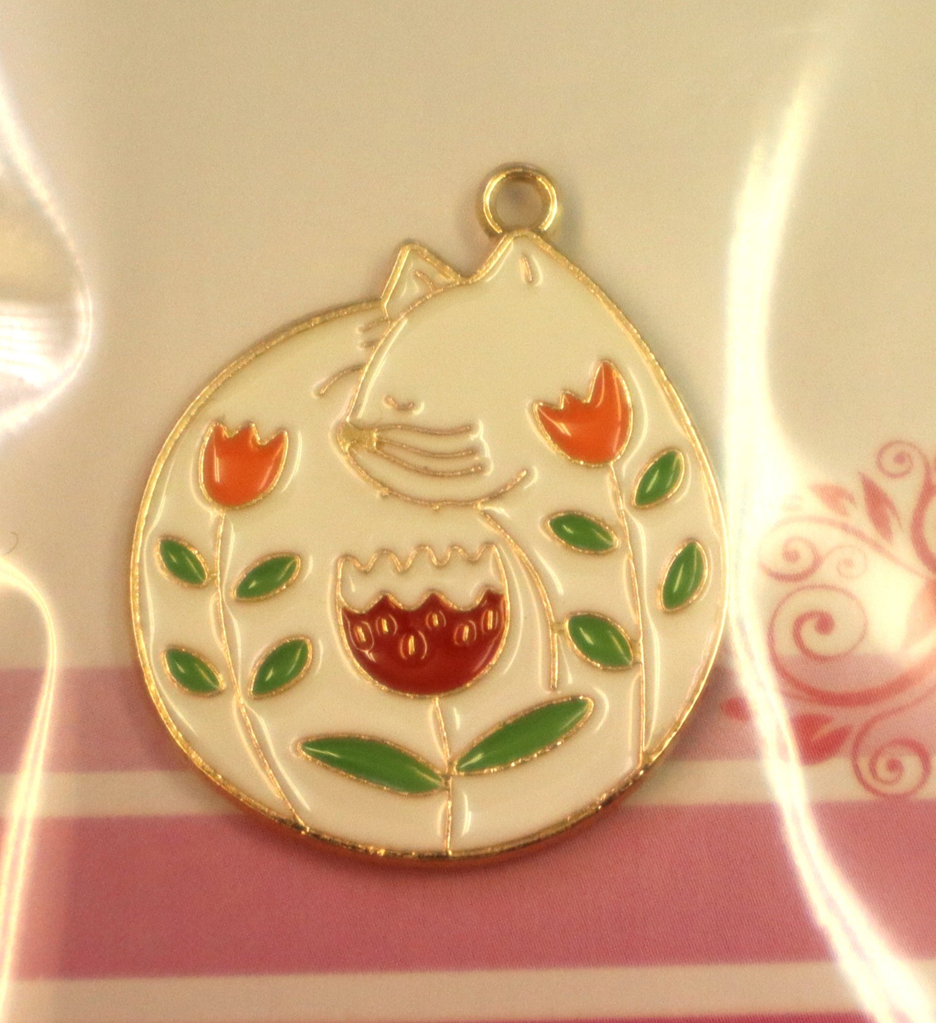 Metal White Curled Up Kitty Cat Needle Minder By Happy Stitch