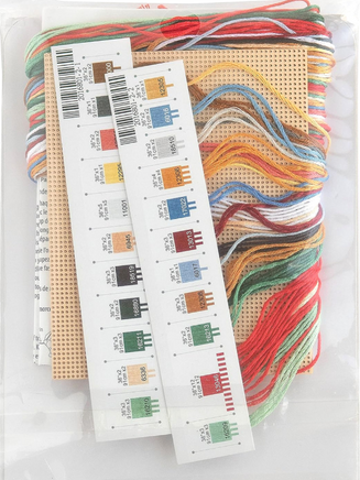 Included in the package: 14 count perforated paper, color-coded thread card with pre-sorted 100% cotton embroidery floss, needle, chart and easy to follow instructions ~ Everything you need to complete this fun Cross Stitch project!