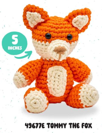 Hi, Im Tommy the Fox! My friends and I are so excited to meet you. From cuddly animals to sweet treats, these kits include everything you need to bring your new friends to life. Easy to create and come with both complete written instructions and a QR code for a stitch-a-long video. Everything you need to create a new playful, soft friend comes inside this kit. Kit includes: 75% Cotton/ 25% Nylon T-Shirt Yarn, Metal Crochet Hook, Metal Needle, Plastic Safety Eyes, Stuffing, Stitch marker, Complete written instructions, and a QR code with a full Stitch-a-Long Video. Follow along with the detailed Stitch-a-long video for an easy, smooth amigurumi experience. This package includes one Tommy the Fox Kit, approximately 5x5x5 inches. The size may vary depending on the tightness of your stitching. Imported