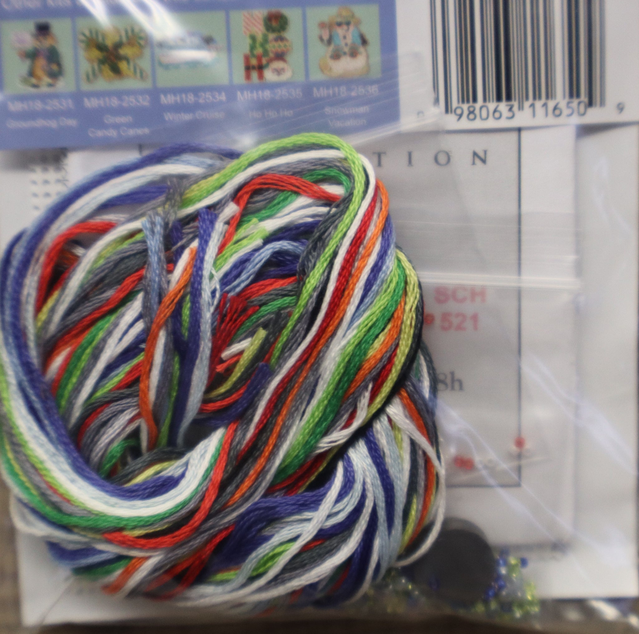 - Beads, treasures, perforated paper, magnet, floss, needles, chart and instructions.