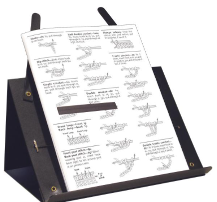 S.A. RICHARDS-Prop-It Magnetic Needlework Chart Holder. Place the chart on the stand with the board behind it and the magnets (in different sizes) are designed to be positioned on the chart to highlight the stitching sequences and moved as the work progresses. Elastic page holder keeps the books opened and pages secured. Holder holds individual charts, patterns, magazines, leaflet, books and digital devices. Unfolds instantly and closes flat to 8.5X11 in for convenient storage and portability. This package contains one collapsible stand made of durable black plastic with adjustable supports for over-sized books and charts, a freestanding magnetic board and magnetic strips. The plastic storage case holds the PROP-IT, patterns and accessories. Made in USA.