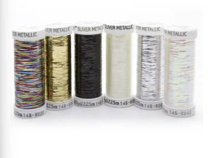 The votes are in and these 6 colors won the "Most Popular" contest! You will be dazzled at how brilliantly reflective Sulky Sliver™ Metallic Thread is. Sulky Sliver™ is a thin, flat, ribbon-like, (solid-color) foil that is laminated with polyester, which makes it brilliantly reflective so you can add the ultimate sparkle to all of your decorative projects. Works perfectly on sewing, serging, and knitting machines, and for handwork.Recommended Needle Size: 14/90, 14/90 Metallic or 14/90 Topstitch as well as a vertical spool pin.