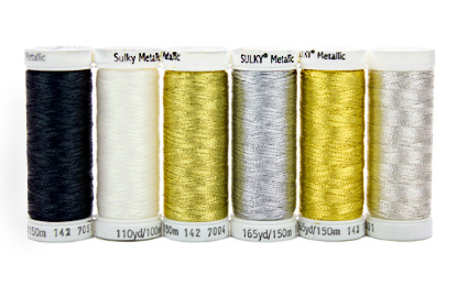 Our 6 most popular Original Metallic Thread contains just the right amount of sparkle to add to any project. Sulky Original Metallic Thread is a round, twisted thread that is created by twisting and bonding a fine metallic foil around a strong core to create an exceptionally smooth, strong, and pliable thread. It is a joy to work with on sewing, serging, and knitting machines and for handwork.