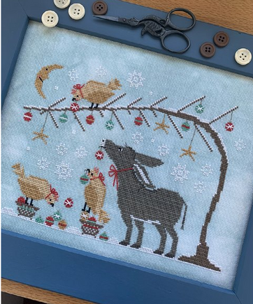Chicken and Waffles was designed for my friends, Hannah and Kim. Hannah is the proud mom of Waffles the donkey, and one day, she asked me to create a cross stitch chart featuring her. During one of our stitch group gatherings, the conversation turned to Kim's chickens-and that's when inspiration struck. We laughed about the name "Chicken and Waffles," and from that moment, the idea for this whimsical design was born. This pattern is a tribute to friendship, shared laughter, and the special bond we stitchers share. It's a little piece of our story, captured in thread.